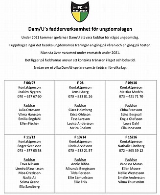 Nu är äntligen alla u-lagen ute på gräs och då är det tänkt att Fadderverksamheten ska dra igång.